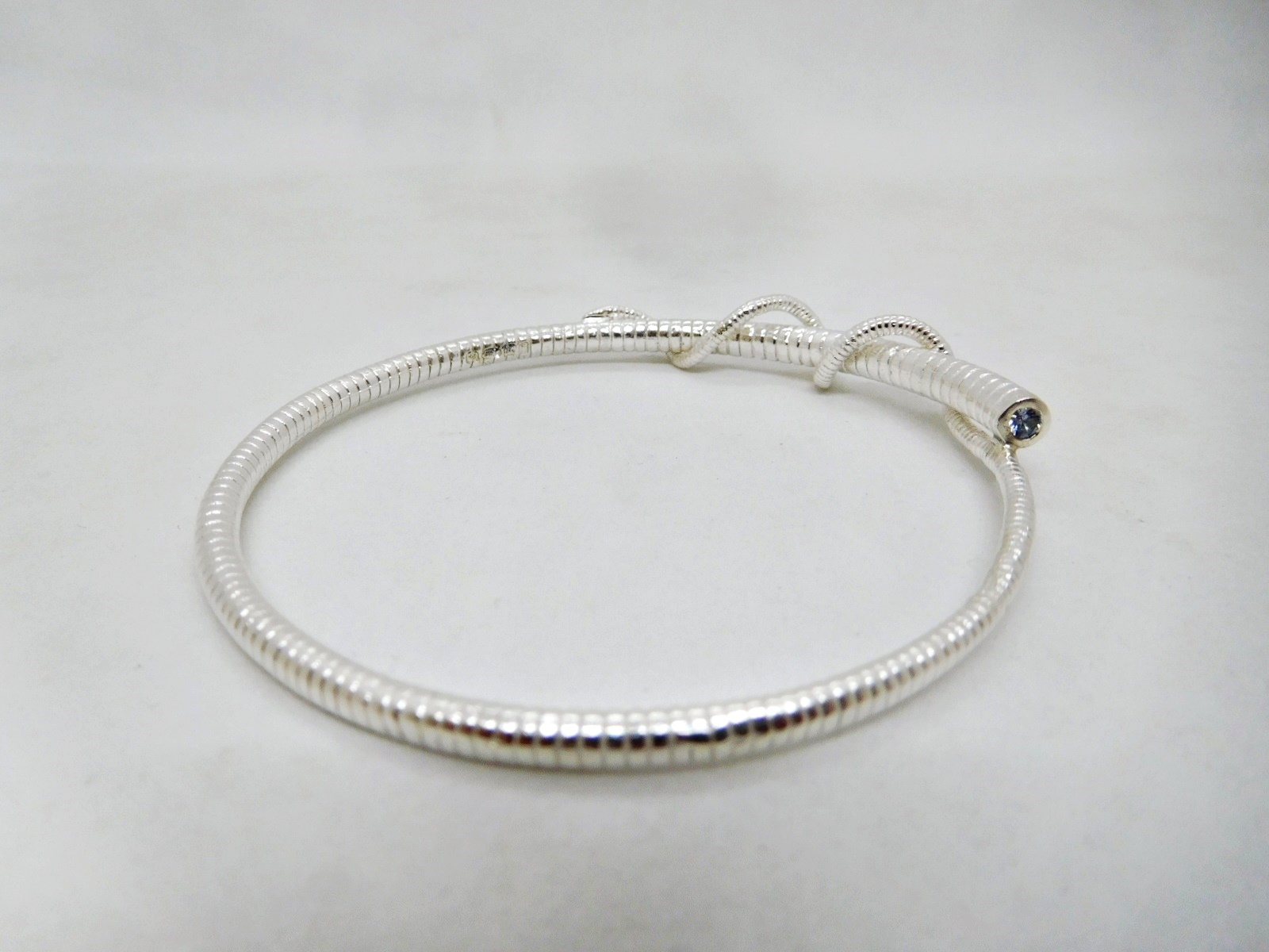 Julian Warrender’s silver lobster antennae bracelet with sapphire. 7.2cm inner diam