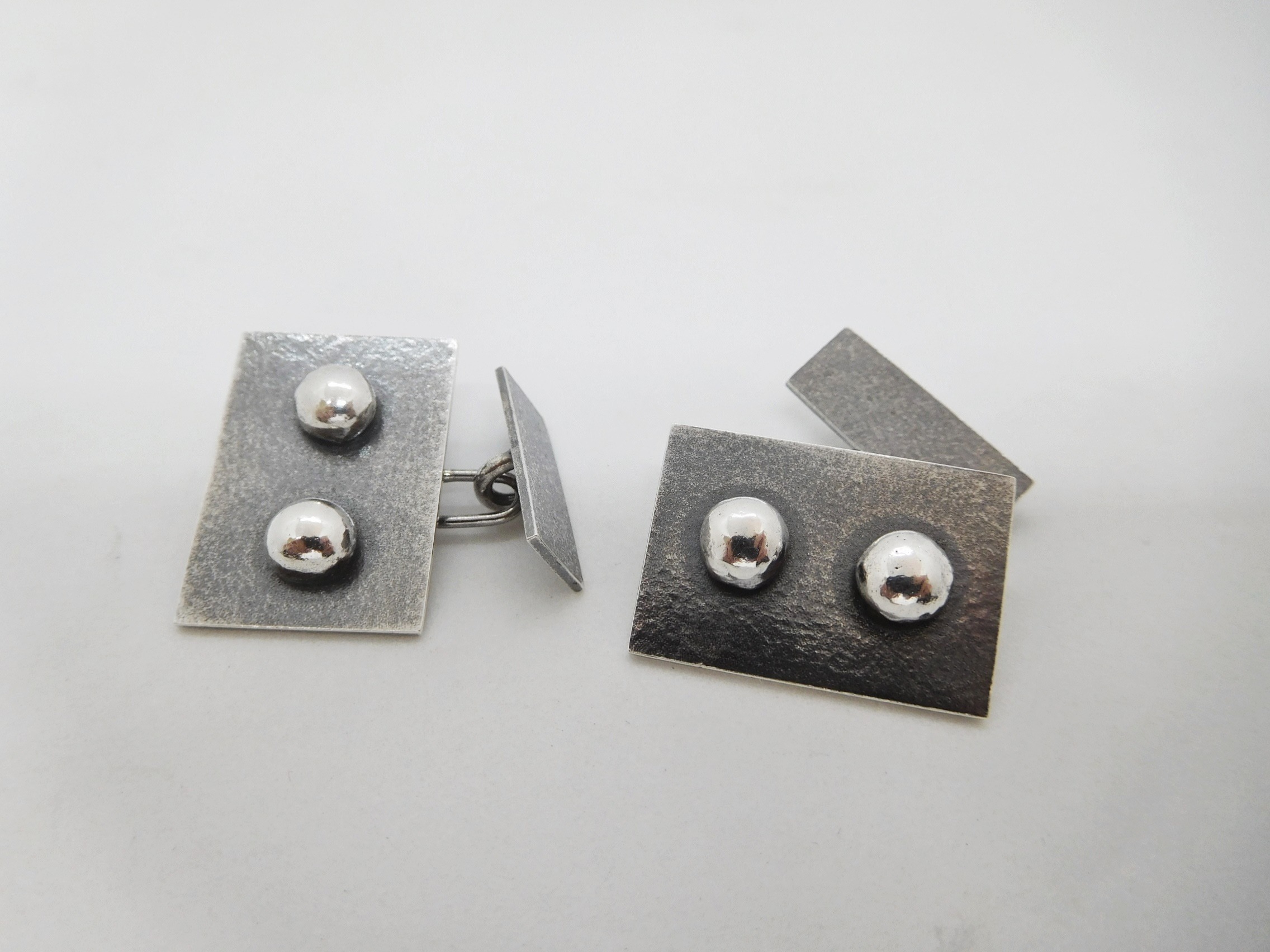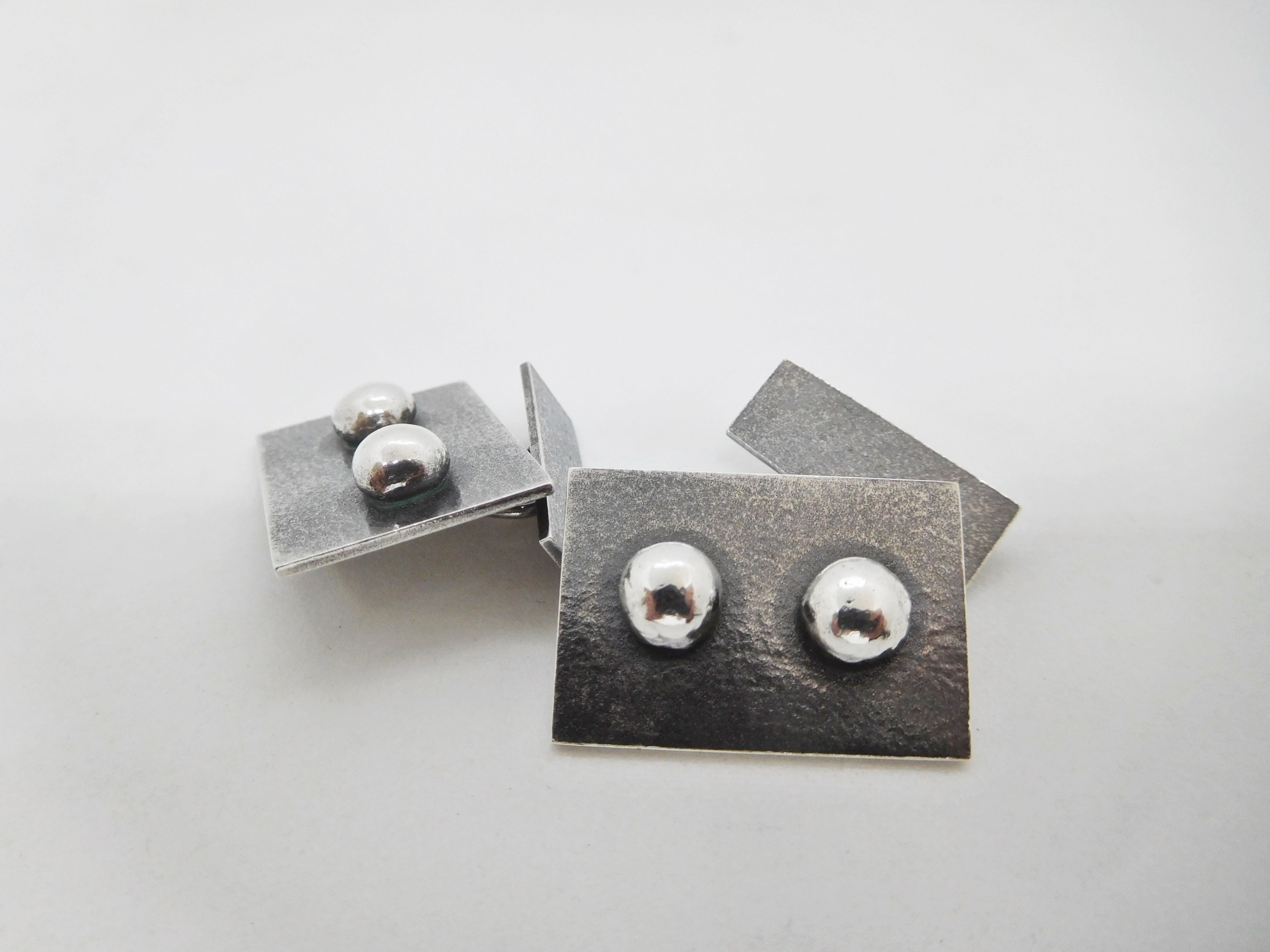 Neil McLaren’s oxidised sterling silver cufflinks. Approx 2.5 x 1.5 cm.