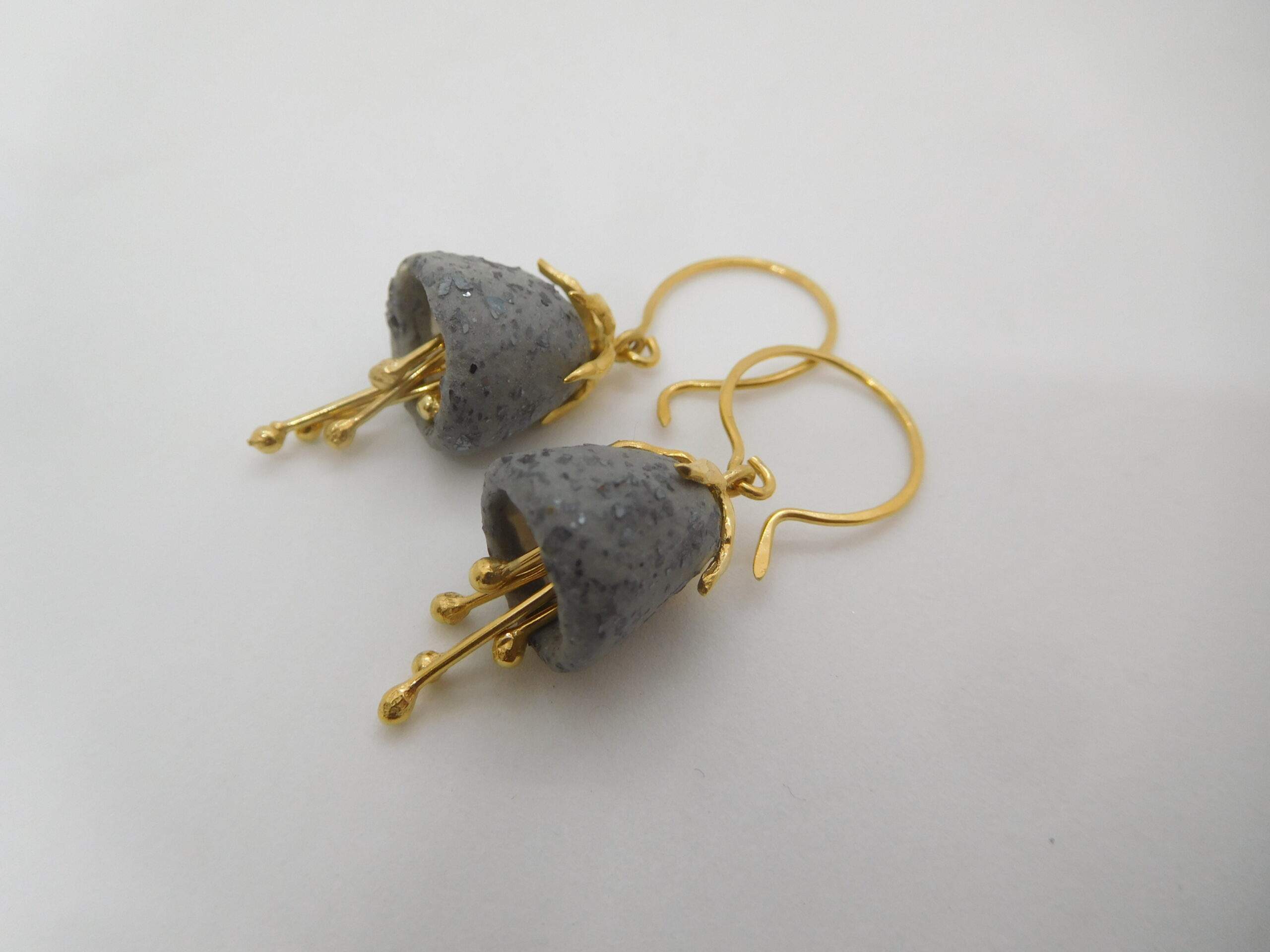 Veronique Pullen’s ceramic and gold plate (22ct) earrings. Drop 4cm